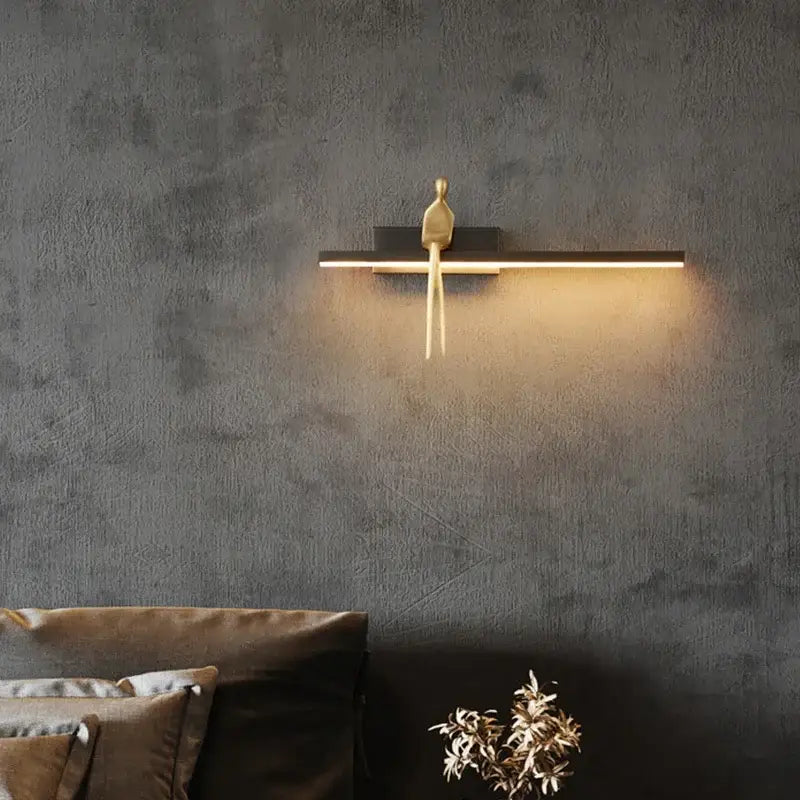 Kinkiet ścienny LED z siedzącą złotą postacią