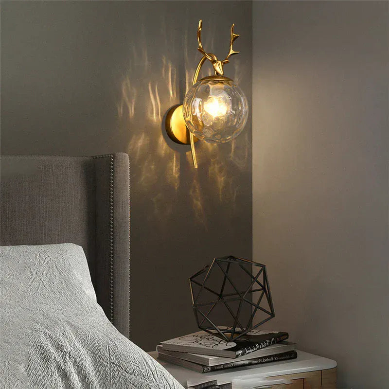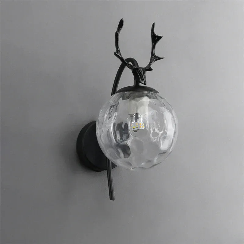 Kinkiet Ścienny | CERVANO – szklana kula z motywem poroża