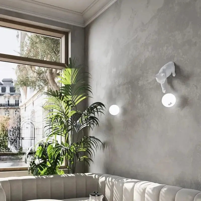 Świetlna kula, jakby „uwięziona” w łapach zwierzaka, dodaje całości poetyckiego, artystycznego wymiaru i sprawia wrażenie, że kot bawi się światłem. Ten kontrast pomiędzy fantazją a klasą pozwala dopasować kinkiet do wielu stylów: od wnętrz nowoczesnych po bardziej eklektyczne aranżacje.