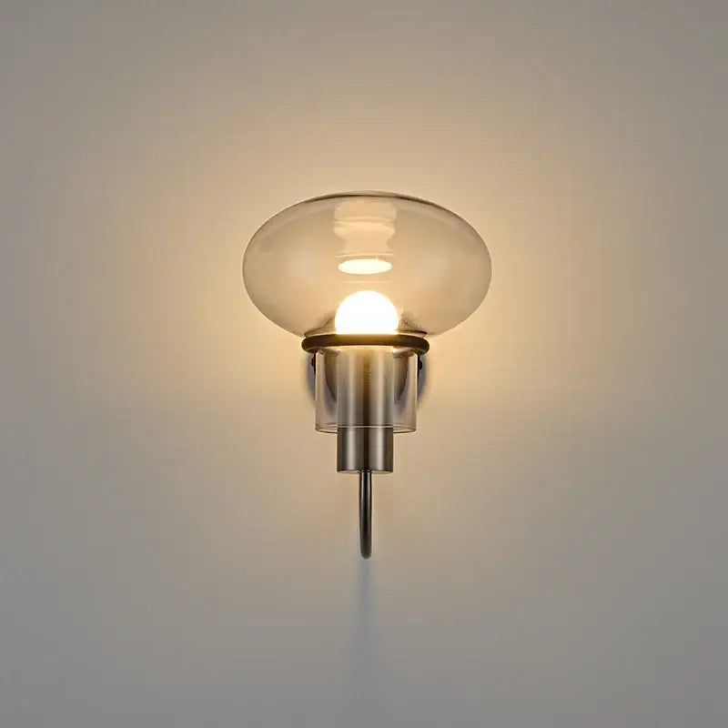 Wokół eleganckiego i poetyckiego wzornictwa ten kinkiet ścienny z dmuchanego szkła ze stalową konstrukcją zaprasza do spojrzenia na światło w Twoim wnętrzu w zupełnie nowy sposób. Łączy subtelną transparentność dmuchanego szkła z szykowną solidnością metalu, tworząc hipnotyzującą harmonię form.