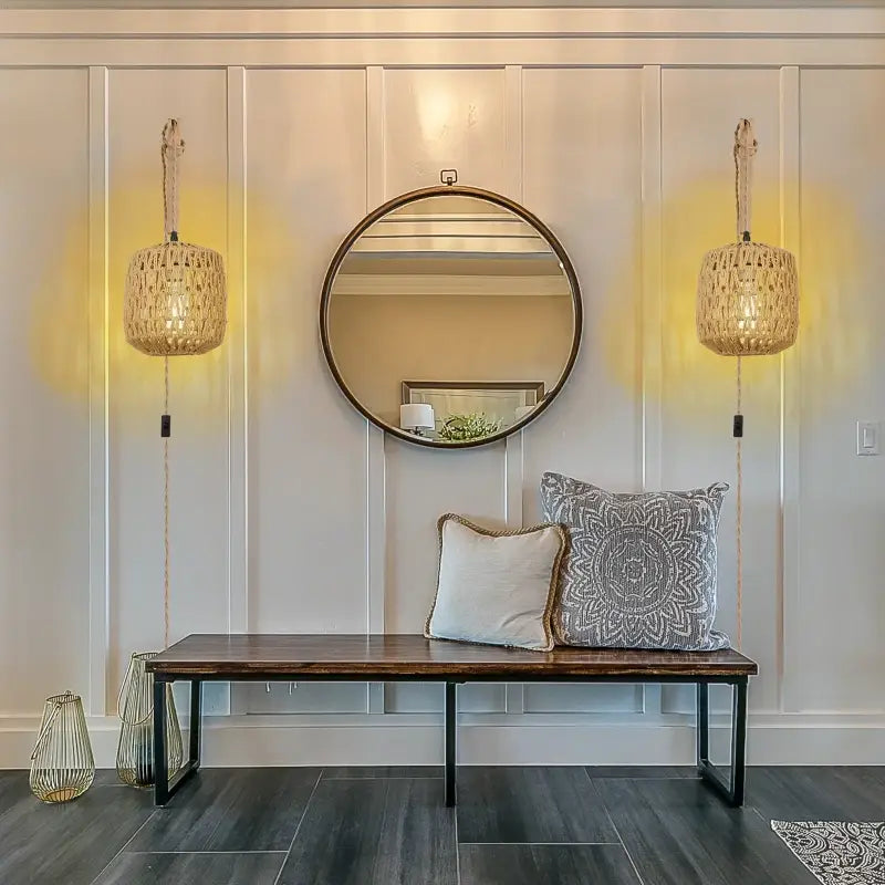Kinkiet ścienny z liny i rattanu to nie tylko lampa, ale też pełnoprawna dekoracja. Unikalna forma oraz naturalne materiały przyciągają wzrok i budują efekt „wow”, zamieniając zwykłą ścianę w estetyczny, ciepły punkt centralny aranżacji.