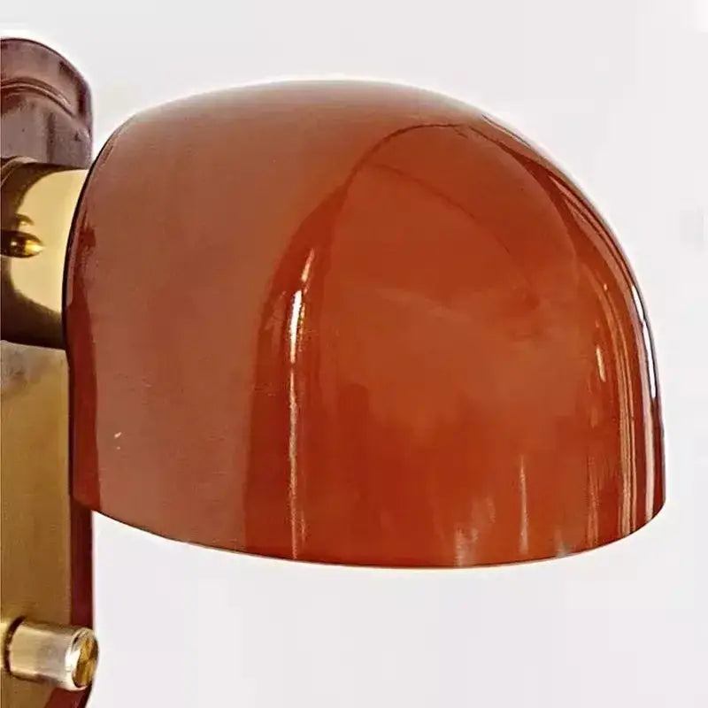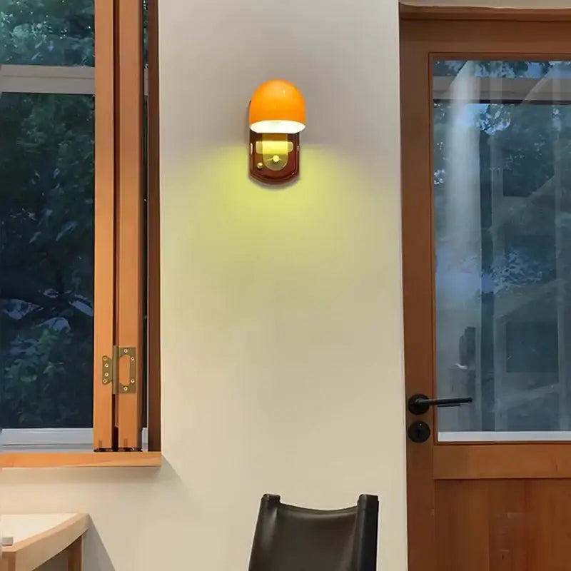 Kinkiet ścienny z brązowym drewnianym mocowaniem i pomarańczowym abażurem to idealne połączenie naturalnych materiałów z wyrazistą barwą. Ciepły odcień drewna wnosi do wnętrza przytulność i autentyczny charakter, a pomarańczowy klosz subtelnie rozprasza światło, tworząc przyjemną, domową atmosferę.