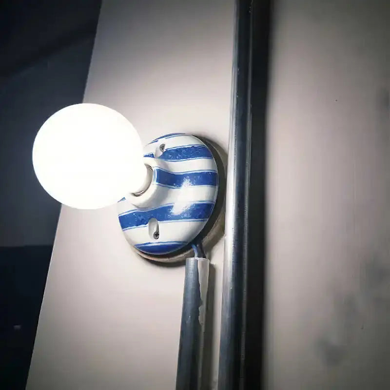 Kinkiet ścienny w białe paski z detalem w kolorze niebieskim lub brązowym to coś więcej niż zwykłe oświetlenie. Łączy funkcjonalność z wyrafinowaną estetyką, wnosząc do wnętrza elegancki, dopracowany akcent. Delikatne pasy i stonowane barwy tworzą przytulny klimat, idealny dla osób, które chcą podkreślić charakter aranżacji w subtelny sposób.
