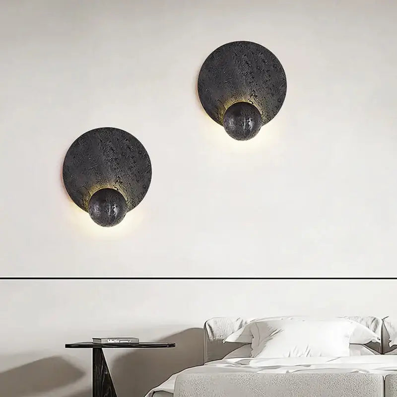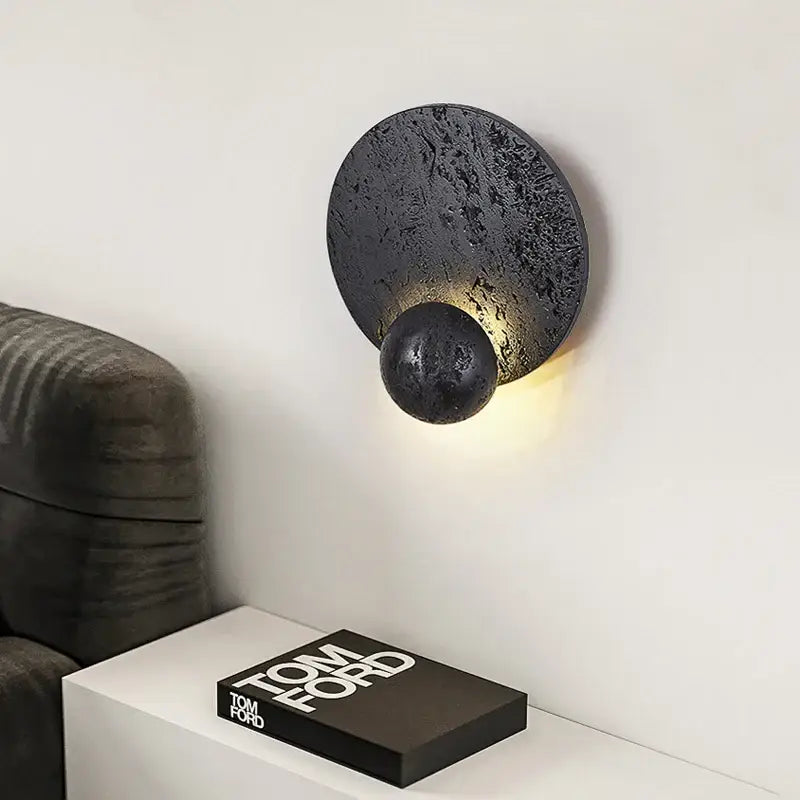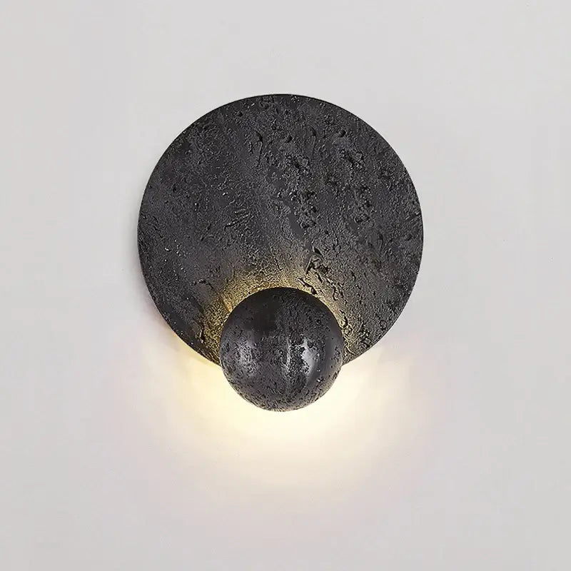 Wprowadź do wnętrza elegancki, kojący akcent dzięki okrągłemu czarnemu kinkietowi z kamienia wulkanicznego. Jego mineralna struktura buduje ciepłą, nowoczesną obecność i przyciąga uwagę bez przesady. To oświetlenie ścienne, które dodaje aranżacji autentyczności, pozostając jednocześnie subtelne dla oka.